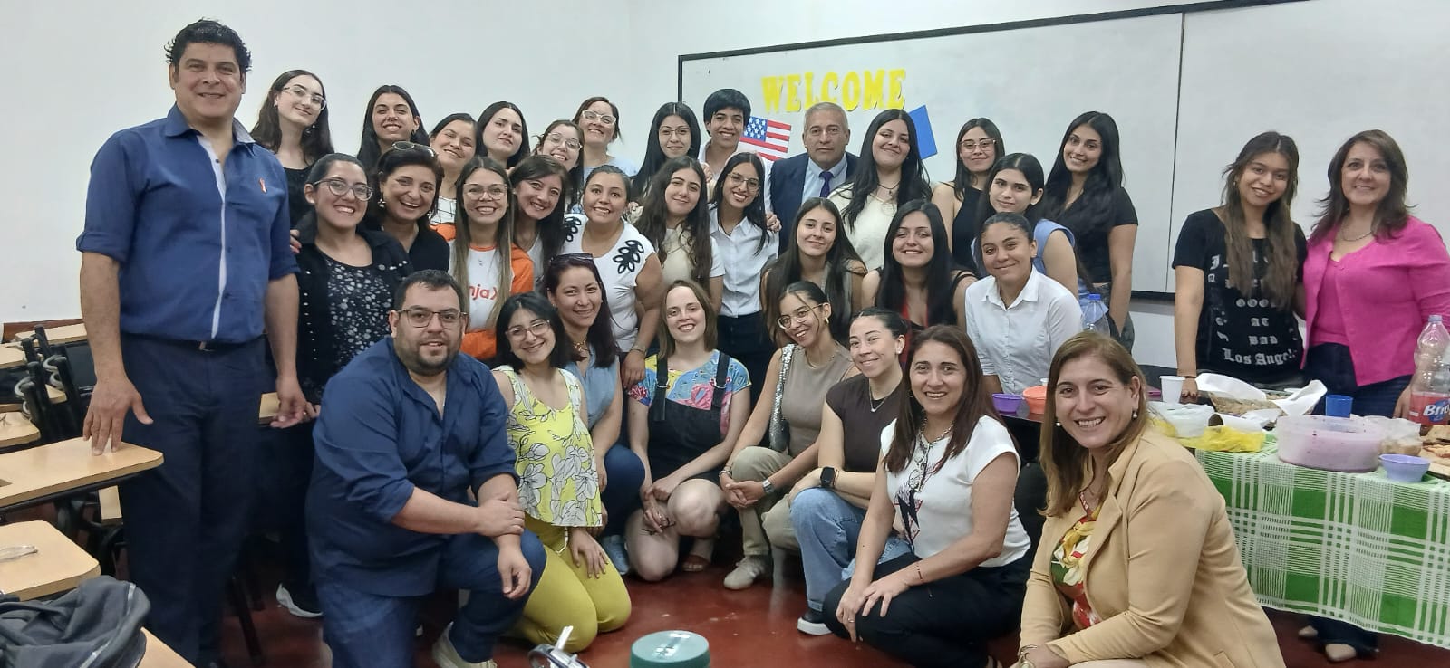 La Coordinadora del Profesorado de Inglés en la sede del sur, junto a los docentes de inglés y francés, invitaron a las becarias a compartir una Jornada con actividades lingüísticas que incluyeron presentaciones de las becarias y los alumnos en ambos idiomas, bailes folklóricos y una merienda con pastelería regional típica.