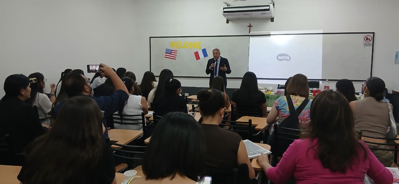 El jueves 25 de septiembre durante la tarde, los estudiantes del Profesorado de Inglés y de los cursos de Francés de la Sede Concepción de la Universidad del Norte Santo Tomás de Aquino, recibieron la visita de Madeleine Adriance y Tania Sabour, becarias por la Comisión Fulbright y de la Embajada Francesa, para trabajar como Asistententes de idioma en la edición 2025 de dichos programas de beca.