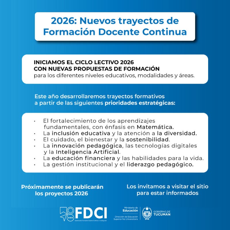 Se invita a la comunidad docente de Tucumán a sumarse a estos espacios de actualización y crecimiento profesional, que buscan enriquecer las prácticas pedagógicas y mejorar los aprendizajes de nuestros estudiantes.